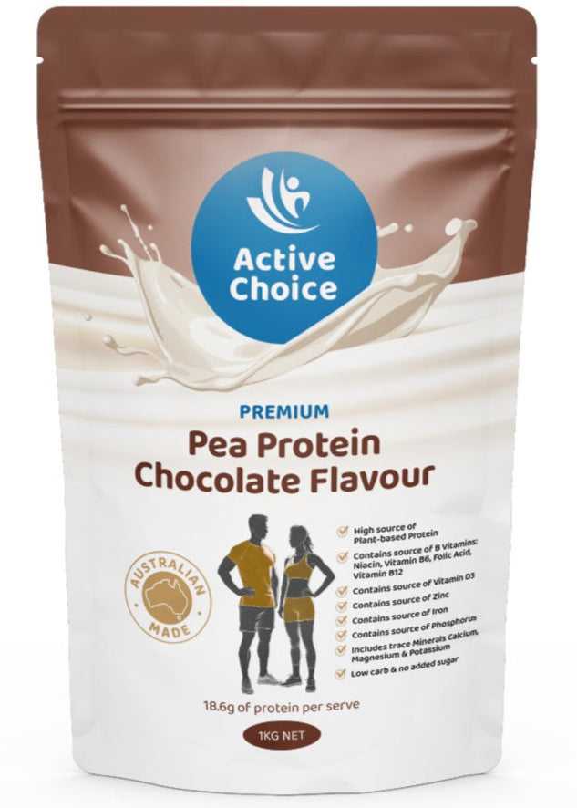 combined with years of expertise in producing top-quality Australian pea protein products. Active choice pea protein has been scientifically designed to provide the essential nutrients needed to promote a healthy lifestyle for you and your family.