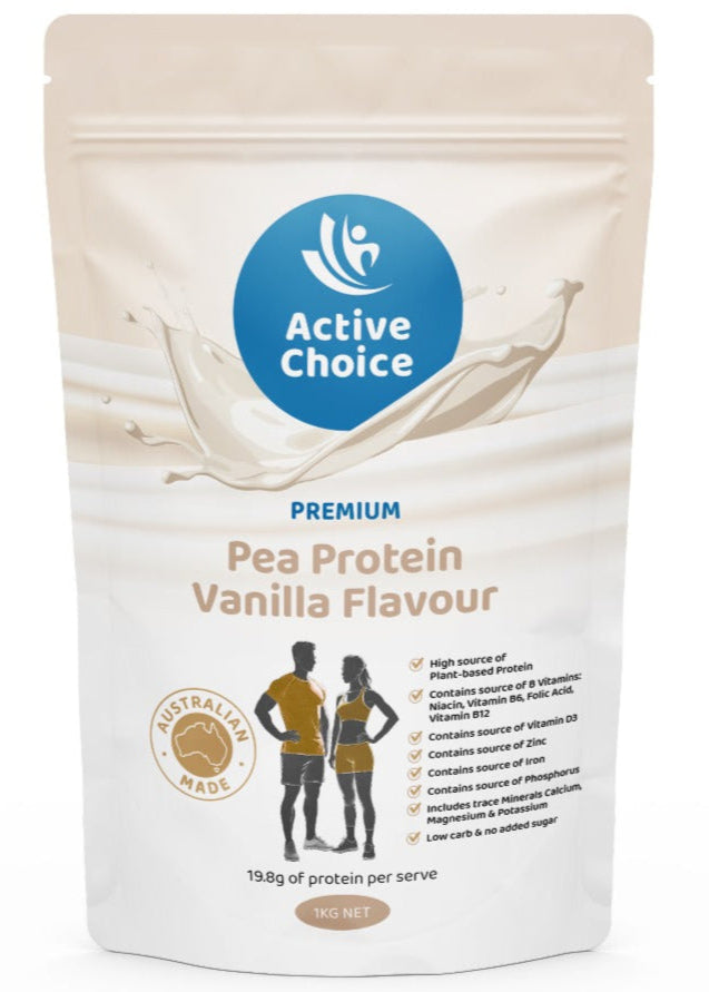 combined with years of expertise in producing top-quality Australian pea protein products. Active choice pea protein has been scientifically designed to provide the essential nutrients needed to promote a healthy lifestyle for you and your family.